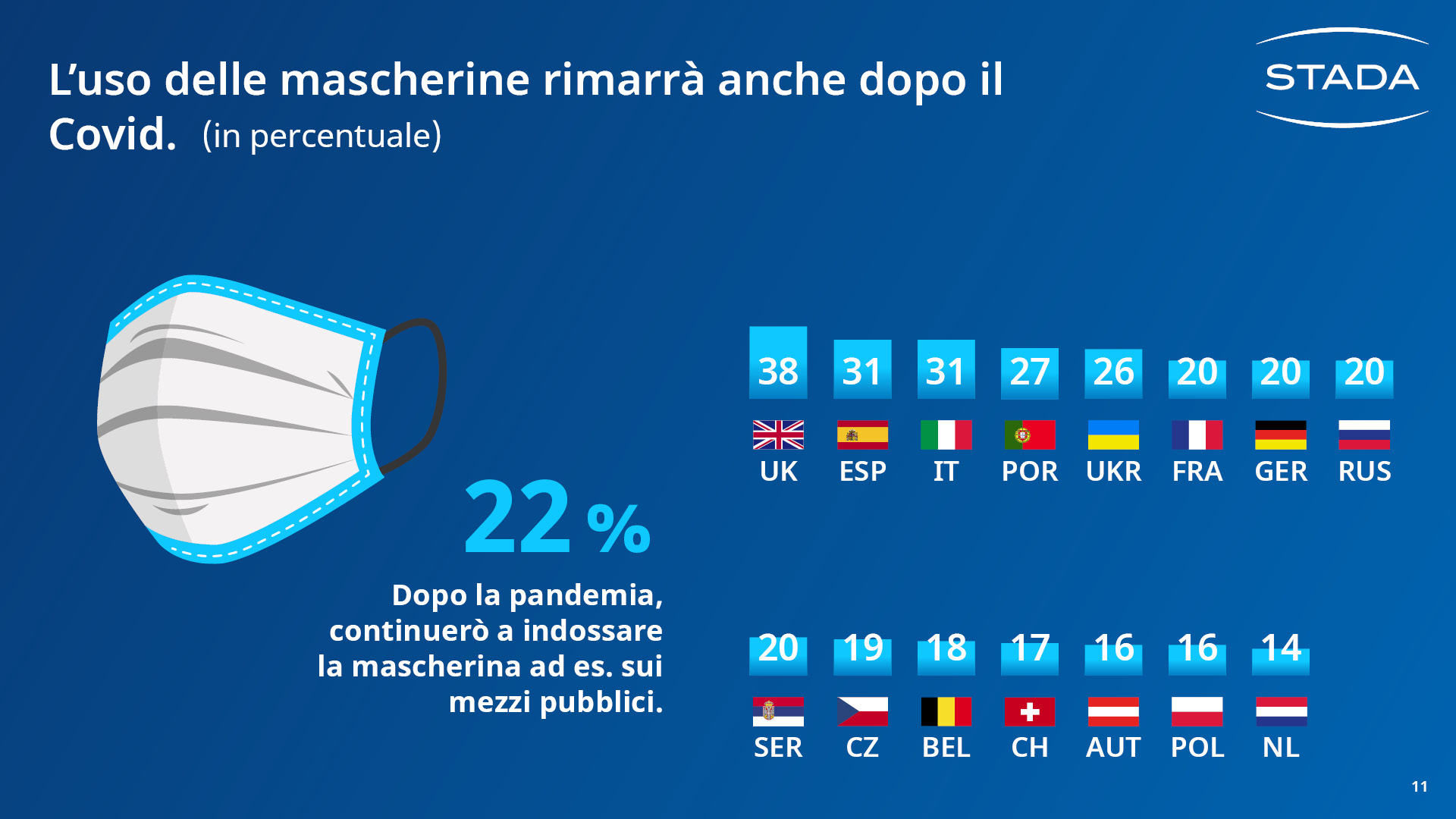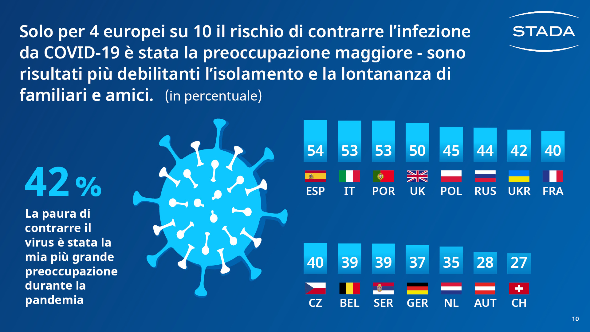 30.000 intervistati, 15 Paesi, 34 domande: lo STADA Health Report 2021 è l’indagine su temi di salute più completa attualmente disponibile. Realizzata in un momento storico estremamente turbolento e complesso, è stata l’occasione per parlare con i cittadini europei e scoprire: cosa ha pesato sulla loro salute mentale durante la pandemia? Di chi si sono fidati per quanto riguarda le questioni sanitarie? I loro atteggiamenti nei confronti della salute e di uno stile di vita sano sono cambiati a causa del Covid?